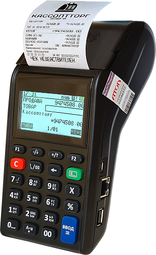 Легкий мобильный (переносной) кассовый аппарат с кнопочной клавиатурой и встроенным аккумулятором.