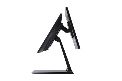 Моноблок работает практически бесшумно, что создает комфортные условия для кассиров и официантов. Гибкая эргономичная подставка позволяет наклонять и поворачивать экран для достижения оптимального угла обзора. При необходимости устройство можно установить на стену с помощью VESA-крепления.