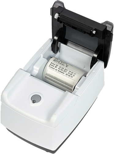 Оснащен автоматическим обрезчиком чековой ленты.